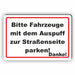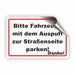 Bitte Fahrzeuge mit dem Auspuff zur Straßenseite parken!