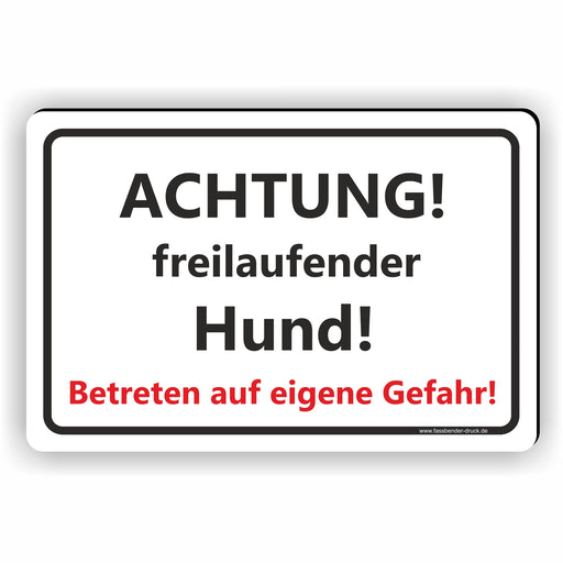 T-009 ACHTUNG! freilaufender Hund! / Betreten auf eigene Gefahr