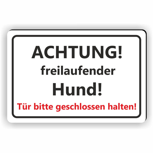 in verschiedenen Größen und MaterialienArt. Nr.: T-12€7,90 - €80,90ab 7,90 €€7,90 - €80,90ab 7,90 €Warnschild: „ACHTUNG! freilaufender Hund – Tür unbedingt geschlossen halten“ Mit diesem deutlich gestalteten Schild weisen Sie Besucher, Lieferante...