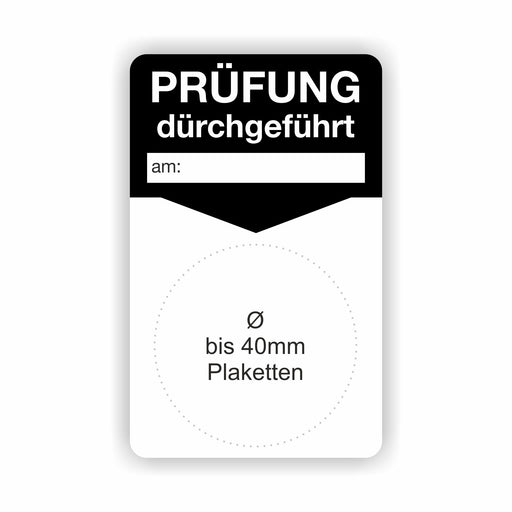 €9,90 - €98,90ab 9,90 €€9,90 - €98,90ab 9,90 €Grundetikett „PRÜFUNG durchgeführt am:“ 50 × 80 mm – Träger für Prüfplaketten Technische Merkmale Format: 50 × 80 mm – Aufnahme für runde Prüfpla...