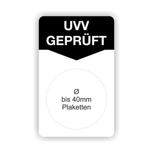 €9,90 - €98,90ab 9,90 €€9,90 - €98,90ab 9,90 €Grundetikett „UVV GEPRÜFT“ 50 × 80 mm – Träger für Prüfplaketten Details auf einen Blick Format: 50 × 80 mm – geeignet für runde Prüfplaketten bi...