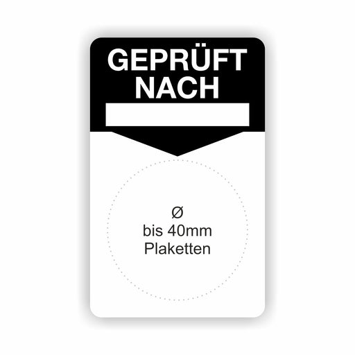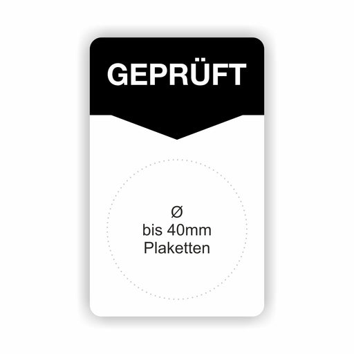 €9,90 - €98,90ab 9,90 €€9,90 - €98,90ab 9,90 €Grundetikett „GEPRÜFT NACH …“ – 50 × 80 mm Trägerlabel für Prüfplaketten bis Ø 40 mm Produkteigenschaften Format: 50 × 80 mm mit zentriertem Mark...