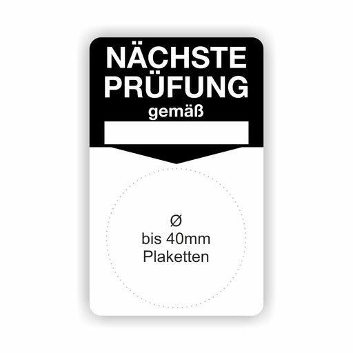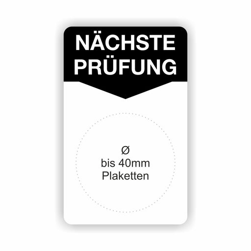€9,90 - €98,90ab 9,90 €€9,90 - €98,90ab 9,90 €Grundetikett „NÄCHSTE PRÜFUNG“ – 50 × 80 mm Trägerlabel für runde Prüfplaketten bis Ø 40 mm Produkteigenschaften Format: 50 × 80 mm mit mittigem ...