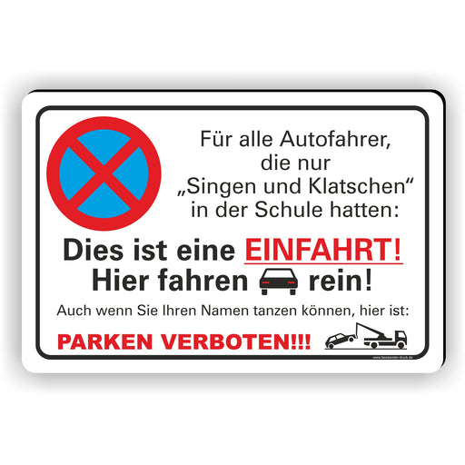 PV-020 Lustiges Parkverbotsschild – Singen & Klatschen Hinweis Parkplatzin verschiedenen Größen und MaterialienArt. Nr.: PV-20€7,90 - €80,90ab 7,90 €€7,90 - €80,90ab 7,90 €Humor-Schild „Dies ist eine AUSFAHRT – Parken verboten!“ – Mit Augenzwinkern gegen Falschparker Produkteigenschaften: Material: 3 mm starke Al... Vollständige Details anzeigen€7,90 - €80,90€7,90 - €80,90€7,90 - €80,90ab 7,90 €