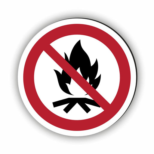 DIN EN ISO 7010Verbotszeichen Lagerfeuer verboten RUND (P045) Piktogram nach DIN EN ISO 7010